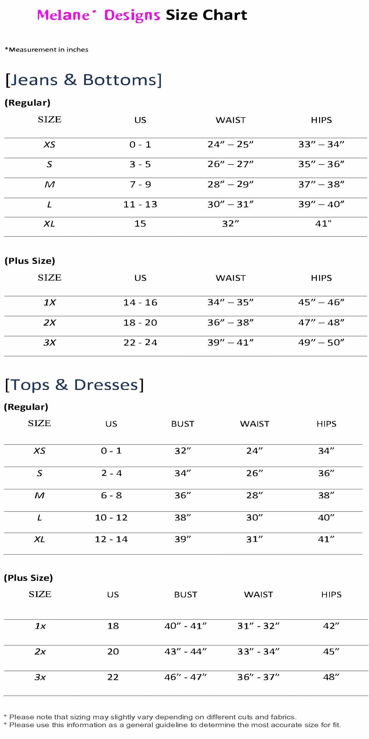 *Please note that sizing may slightly vary depending on different cuts and fabrics. Please use this information as a general guideline to determine the most accurate size for fit.